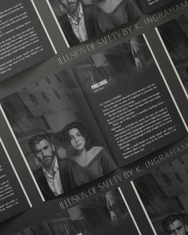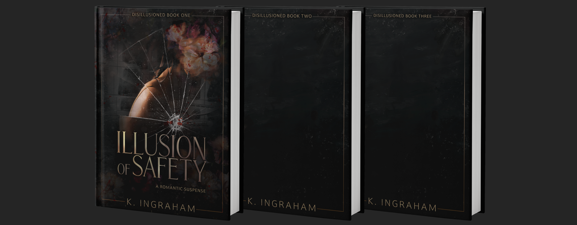This book contains dark and mature themes intended for those who are 18+. Illusion of Safety deals with heavy topics that may be triggering for some readers. It contains explicit language and explicit sexual content. Additional content and trigger warnings include: Parental loss (past, not depicted), graphic physical violence, sexual assault (fades to black, not on page); PTSD, panic attacks (on page), familial estrangement due to religious beliefs, references to childhood neglect, abduction, stalking